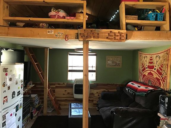 Tiny home living at its best! Kitchen has hot plate and toaster oven. Lots of living at one end, kitchen in the middle, loft for sleeping at each end of the cabin. Laundry connection in the storage/laundry hut. 2 car covered parking. 2.06 acres at the end of the road. Paved commute. Rural water. Wooded lot.