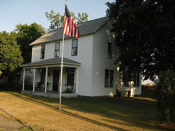 2 STORY, 3 BEDROOM, 1 BATH, FULL BASEMENT.SITS ON .85 ACRES. HAS 2 STALL GARAGE AND 3 STALL MACHINE SHED. ON LARGE CORNER LOT SHADED WITH WALNUT AND CHERRY TREES. ROOF IS LESS THAN A YEAR OLD, NEWER CENTRAL AIR. ENERGY EFFICIENT FURNACE. WASHER/DRYER, ELECTRIC RANGE, SIDE BY SIDE FRIG. INCLUDED. COMES WITH 6 UNIT MOBILE HOME PARK. DO NOT OWN MOBILE HOMES, JUST THE LOTS THEY SIT ON. GREAT SIDE INCOME THAT CAN MAKE YOUR MORTGAGE PAYMENT.