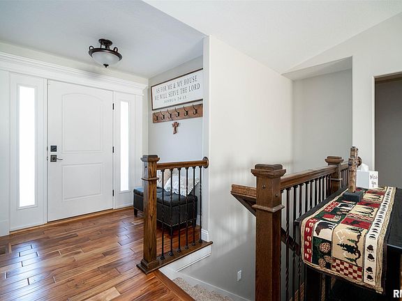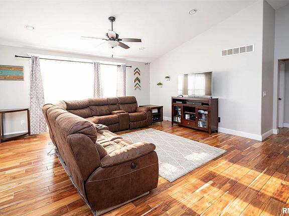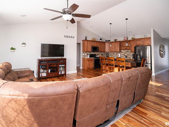 A fresh twist on the classic Midwestern Ranch Home that offers the added bonus of a finished walk-out basement! This stunning ranch style home showcases the best of contemporary finishes, an open floor plan and natural wood concepts. The vaulted ceiling in the expansive Great Room area is inspired by the color palettes of the outdoors. Reclaimed wood countertop on the island in the kitchen is only going to get better with age! Warm wood flooring can be seen throughout most of the living spaces. The split floor plan offers the master suite to one side, junior suites that share a bathroom on the other...and then a fourth bedroom suite in the daylight basement as well! Rounding out the easy living home is a main floor laundry with storage cubbies, three car garage, and walk-out finished basement that also includes ample storage. Move right in and enjoy the great outdoors on the covered deck in all kinds of weather as you look out over the fenced-in backyard!