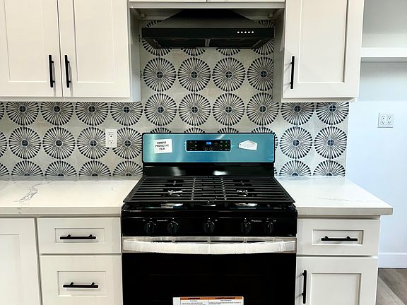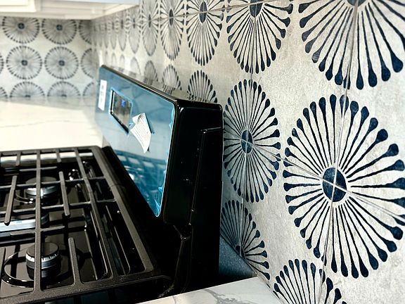 Enjoy a gorgeous kitchen featuring quartz countertops and a stunning backsplash, creating a stylish and functional space.