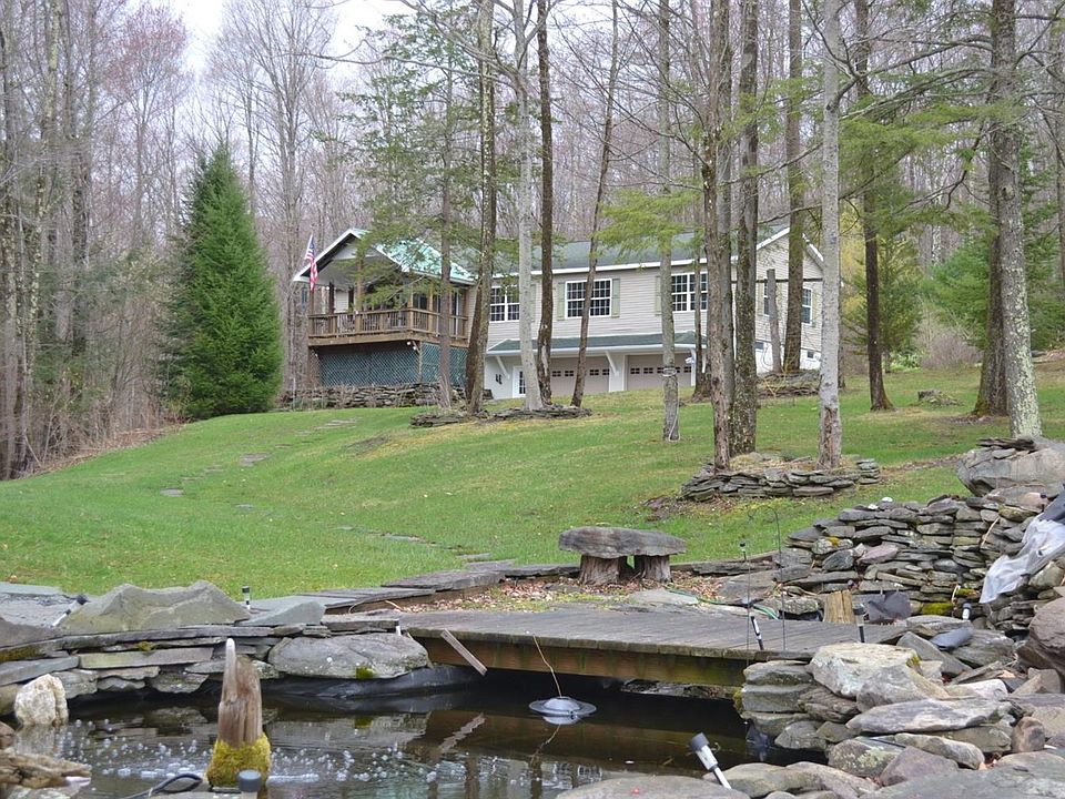 Find solitude in this charming move-in ready home nestled on a quiet country road on over 5 acres of gorgeous stone landscaped wooded bliss. This residence has been lovingly maintained and exudes superior quality finishes, stunning design elements, a well thought-out working kitchen and is perfect for a year-round retreat or weekend getaway. You'll love the serenity and views from all directions: enjoy morning coffee from your front covered deck overlooking the blueberry bushes and fish pond or the sunrise off the rear deck with its forest of trees and wildlife. The interior features an oversized master ensuite, two additional large bedrooms sharing a full bath, an open floor plan of living room, kitchen and dining area great for entertaining. Finished lower level features 10' ceilings, a wood burning stove that will keep the entire home toasty, loads of storage and abundant 2+ car garage and workshop. Short walk to Emerald Lake (lake rights) for fishing or minutes to Pepacton Reservoir for excellent trout fishing and State Land and close to the hamlet of Downsville for restaurants and shopping. Delaware County low taxes and nonexistent traffic, yet 2.5 hrs from the GWB. Quiet, serene area yet close to small town amenities, major transportation, shopping, and restaurants! High speed internet makes working from home a definite possibility. Come see what all the buzz is about in the Catskills!