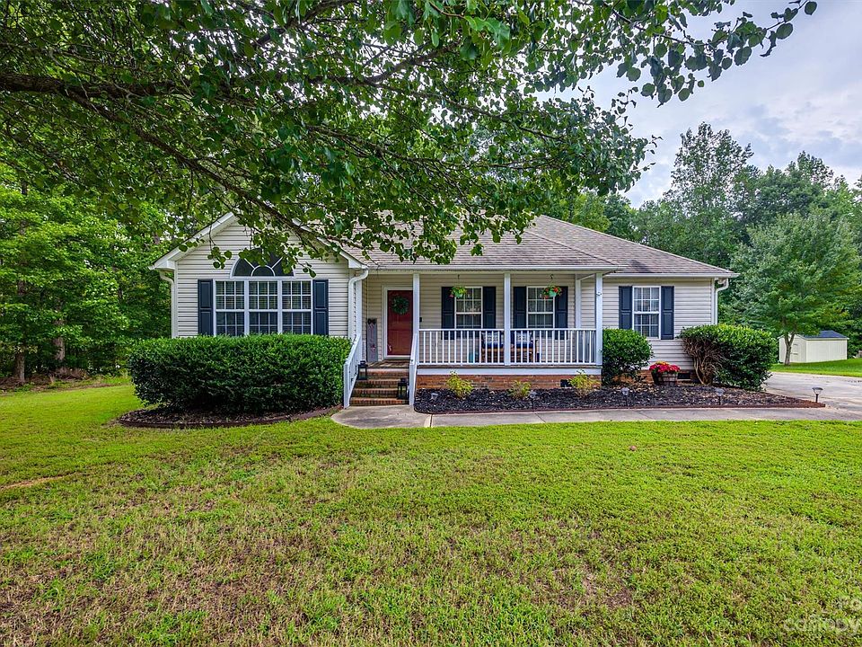 You will love the FANTASTIC layout of this single story home on over an acre in Rock Hill! This 3 bedroom, 2 bath ranch features a rocking chair front porch, fenced backyard, a great deck for entertaining, hardwood floors, gas fireplace, and granite countertops The split bedroom plan combined with the large living room, dining area, and spacious kitchen make this floorplan a dream! Plus, the home has exceptional storage in closets, pantry, and attic space. No HOA and convenient to I-77, shopping, and dining! You'll be ready to call this one home!