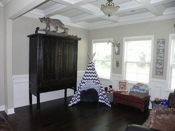 This open floor plan 4 bedroom, 3 bathroom house has tons to offer. The living room features a stone, wood burning fireplace with the formal dining room being attached. The formal dining room boasts a coffered ceiling and gorgeous Judges paneling. All the main living areas have beautiful hardwood floors throughout. Massive master bedroom that includes trey ceilings and a sitting area. Master bath features a large soaking tub, Tiled shower, and a double vanity. The second bedroom upstairs is very spacious and it has been accented with hardwood floors up the back wall. Large backyard with 6 foot privacy fence.