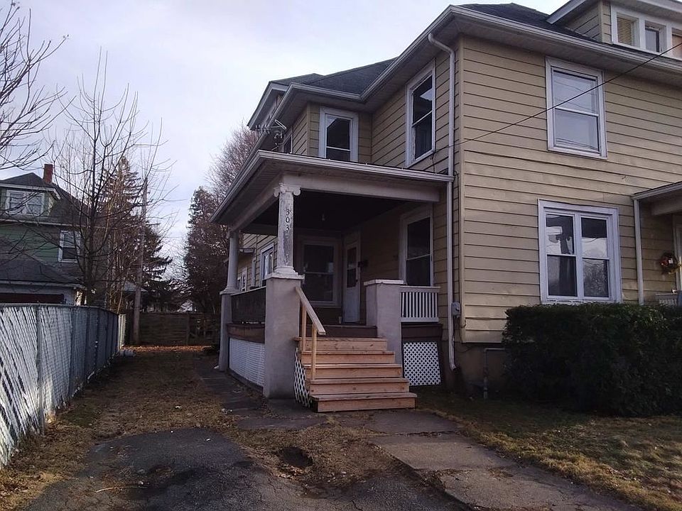 Spacious 3 bedroom, 1 bath Duplex with nice front porch 1st floor laundry, new carpet, freshly painted, includes range, refrigerator, washer & dryer hookups, partially fenced backyard, off street parking