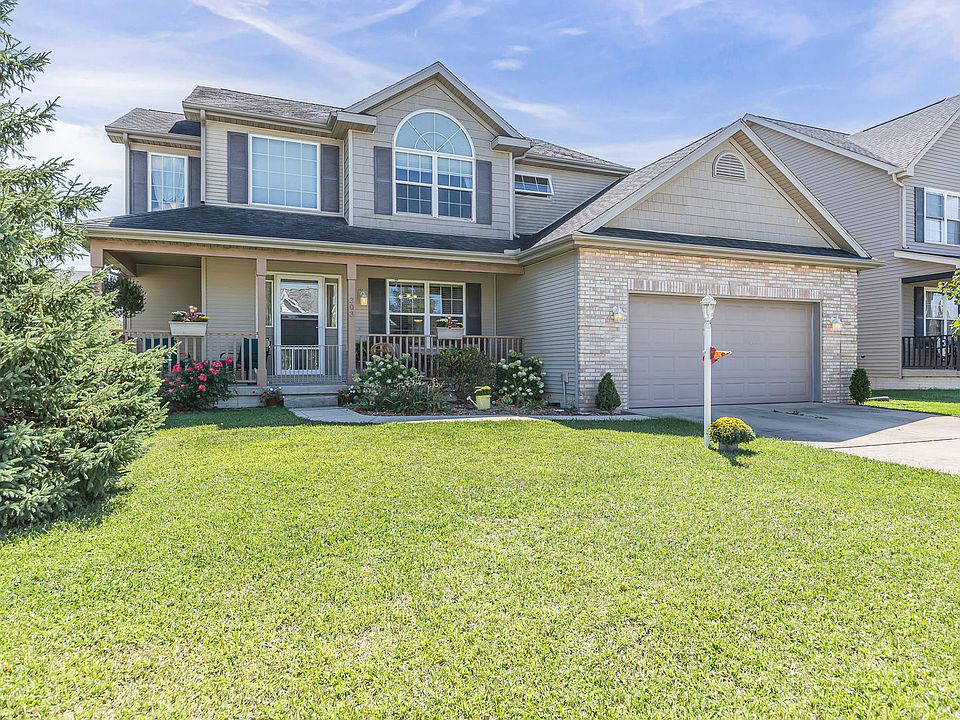 Welcome to this two-story home with 4 bedroom, 2 1/2 baths located in popular Prairie Fields subdivision with an unfinished basement full of possibilities (roughed in plumbing for future bathroom). Enjoy the wrap around front porch and lovely landscaping. Inside is an oversized living room with a gas-start fireplace that leads into the breakfast area and large kitchen with all appliances staying and a pantry closet for all the essentials. There is a spacious laundry room with washer and dryer staying and half bath. The dining room is separate and spacious and great for entertaining. Upstairs the relaxing master bedroom features a large walk-in closet, separate shower, jetted tub, trey ceiling and the additional 3 bedrooms are large and cheery. There is an over sized two-car garage with a pull-down attic storage and a large fenced backyard great for family entertaining and privacy. The smoke detectors are hardwired and are approximately 6 years old. New windows installed in 2009 and a new sliding door in 2016. This home provides so much so schedule your showing today!