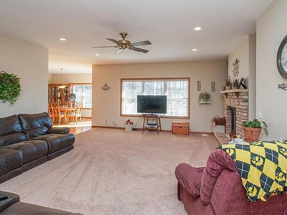 Looking for nearly an acre IN TOWN, with city water and sewer, AND a quality built newer home, in a quiet off the beaten path neighborhood? LOOK NO FURTHER! This would be it! 4 bed, 3.5 baths, 3 stall heated garage, and finished LL with large kitchenette. Perfect private patio off the garage, as well as a maintenance free deck off the dining room! Hardwood floors, huge kitchen, and 3 (yes, 3!) gas fireplaces for your enjoyment. Sun-room is perfect for relaxing and reading a book by the fire... Lots of gorgeous landscaping... Central vac, and great storage. HUGE rec room area downstairs, Garage has its own bathroom, and utility sink, and drains in the floor. So much to brag about in this home, come take a peek!