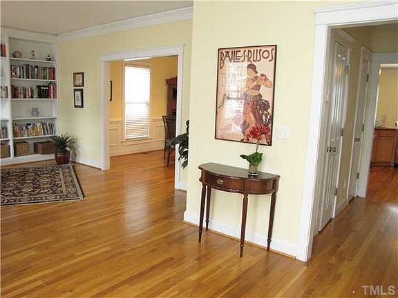 Hardwood floors and crown moldings throughout entire house, built-in bookcases in living rm, wood paneling in dining rm, new stainless steel appliances, recessed lighting, granite countertops, kitchen opens to breakfast nook and family rm. Tray ceiling in master. Large master WIC with built-in drawers, wood shelving. Garden tub and double sinks in tiled master bath. Fully fenced yard. Neighborhood Description Friendly, family-oriented neighborhood. Walk to nursery, elementary, middle schools as well as movies, restaurants, shopping (including co-op market). Community pool, tennis courts, and 6 playgrounds within walking distance. Also, easy walk to stop for free public bus to UNC campus and other Chapel Hill destinations. Weekly farmers market, outdoor movies, and free concerts all summer long.