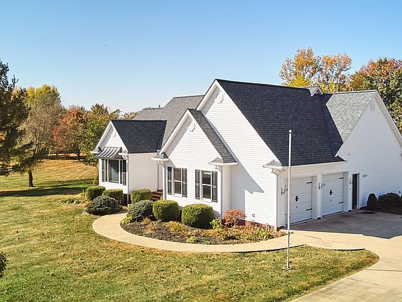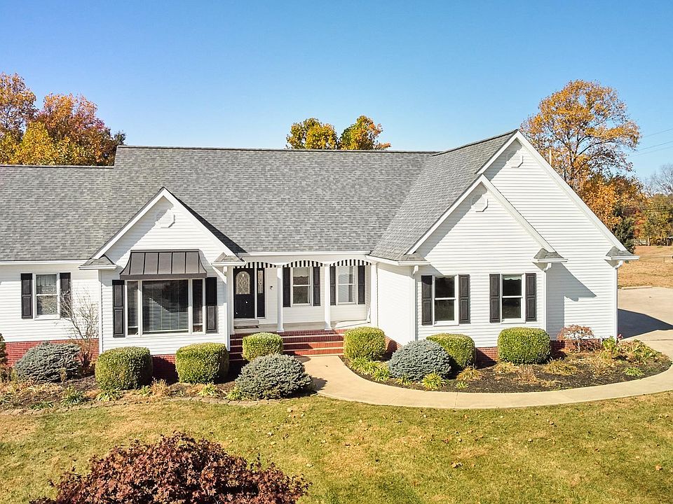 Curb appeal! This beautiful and solid home is situated on a 2.4 AC lot in Glenview Estates. The floor plan provides over 2,000 square feet all on one level, open living space with cathedral ceiling, 3 bedrooms and 2.5 baths. Customized features can be found throughout including solid wood doors and millwork, Andersen Windows, hardwood flooring, amish made cabinets and solid surface counters. Enjoy the beautiful grounds from covered front and back porches! This property is partially tree lined and features a gazebo and a large shed that could be used for a variety of purposes (complete with drywall, windows and a garage door!). There have been many improvements in the last five years including but not limited to: new roof (2018); encapsulated crawlspace (2022); new washer/dryer (2022); new dishwasher (2022); and new water softener (2022).