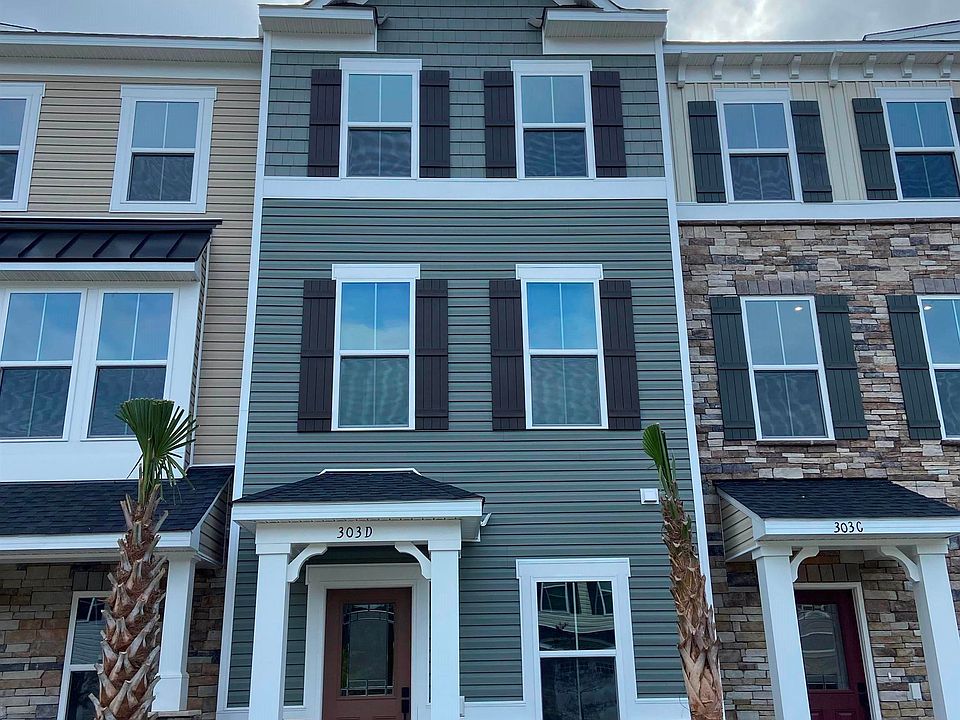 Welcome to Forest Pines, a new townhome community consisting of only 84 homes. Located across from Arrowhead Golf Course, the HOA covers grass cutting and mulch bed maintenance, exterior insurance policy, trash collection, and access to an on-site pool and clubhouse. This neighborhood is nearby the Tanger Outlets, Coastal Grand Mall, airport, grocery stores, and only 15 minutes to the beach. This townhome is our 3-story Hepburn plan featuring 3 bedrooms, 3.5 bathrooms, a dedicated ground floor recreation/flex room, a ground floor rear patio, and second-level deck off the kitchen and dining space. All of our townhomes at Forest Pines included stunning exterior curb appeal, granite or quartz countertops, vinyl plank flooring, stainless appliances + the fridge, crown molding, tile backsplash, tray ceilings, and ceramic tiled showers. We have an unfurnished model of this floorplan to preview on-site. Schedule your appointment today!