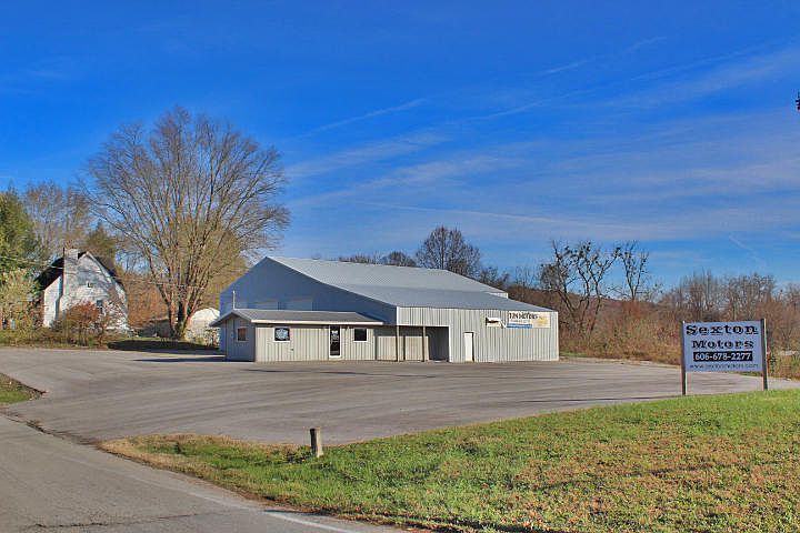 Multi purpose metal commercial building with 5500 sq. ft., 3 14x12 overhead doors on each end of the building, so you can drive thru the building, very nice office area with central heat & air & bathroom, city sewer, paved parking area, formally used as a car lot, very high traffic location!
