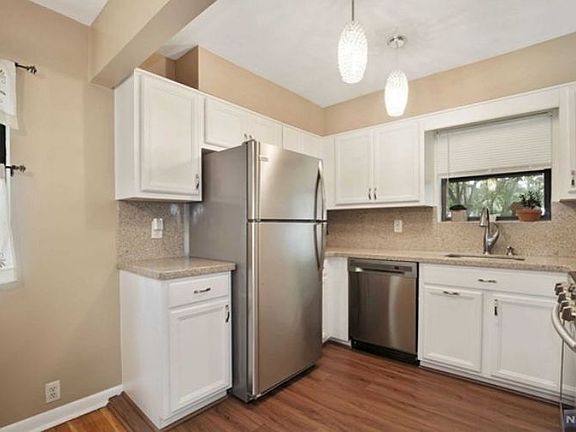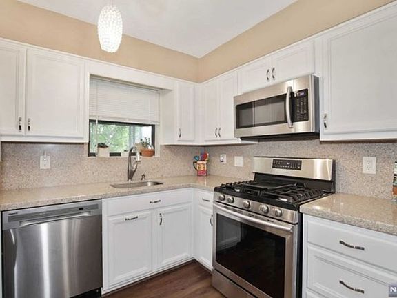 Beautiful and Updated 3 Bedrooms and 2 Full Bathrooms located at Grand Meadow Condominium with a manicured landscaped courtyard setting. Main level features gracious entry hall, custom closets, living room with fireplace, updated kitchen with granite countertops newer ss appliances, newer laminate floors, 2 BR, formal dining room; laundry room, full bath. Spacious lower level is complete with family room; bedroom; full bath; large storage area, laundry room and walk out. Freshly painted and newer washer dryer. Central air forced hot air. Assigned parking space. Steps to Manhattan bus and downtown. Close to major highways, GWB and NYC. Just unpack and move in! Will not last