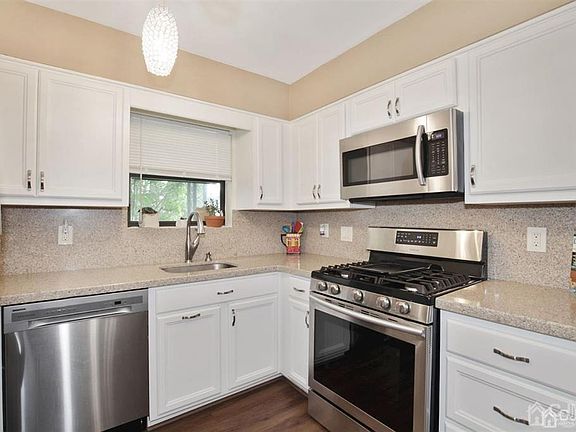 Beautiful & Updated 3 Bedrooms & 2 Full Bathrooms End unit located at Grand Meadow Condominium with a manicured landscaped courtyard setting. Main level features gracious entry hall, custom closets, living room with fireplace, upgraded kitchen with granite countertops/newer ss appliances, newer laminate floors, 2 BR, formal dining room; laundry room & full bath. Spacious lower level is complete with family room, bedroom, full bath, large storage area, another laundry room & separate entrance. Freshly painted, central air & newer washer/dryer. Assigned parking space. Steps to Manhattan bus and downtown. Close to all major highways, GWB & NYC. Just unpack & move in! Will not last.