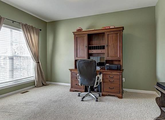 Excellent 4 bedroom home in move-in condition! This home is nestled on a cul-de-sac street inside the upscale Wyndgate neighborhood. The kitchen features 42" cabinets, center island with breakfast bar, new granite counter tops, and wood floors. Main level laundry in spacious mudroom. The large great room is highlighted by its gas fireplace with upgraded brick surround, and elongated bay window with stunning plantation shutters. Private office and separate formal dining room included on main level. Upstairs features 4 total bedrooms. The master suite features a cathedral ceiling, huge walk-in closet, and private bath with separated tub/shower, and dual sinks. Also included is a fenced-in back yard w/ patio. The home is equipped with zoned heating/cooling, irrigation system, and built-in PestShield system. In addition to 4 bedrooms, 2.5 baths, and the 3 car garage, a full unfinished basement allows for storage. The neighborhood provides a community pool, playground, and walking trails.