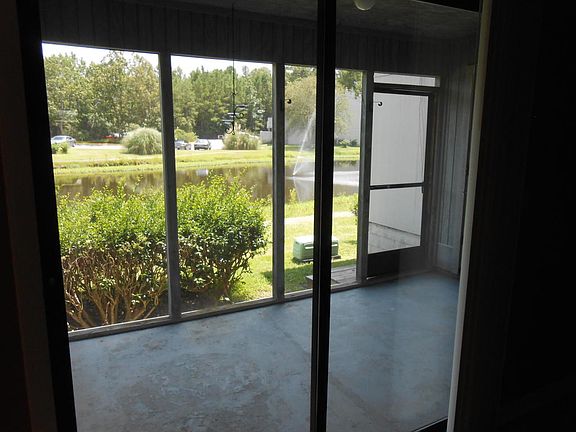 First Floor Unit on the Pond! Family Room with cozy Fireplace and access to Screened Porch overlooking Duck Pond. Current Owner called this property home for 18 years, and has made some lovely upgrades during ownership. Easy-care ceramic flooring throughout. Upgraded vanities, mirrors, lights and toilets in both baths. SMOOTH ceilings in Family Room, Dining Room, Kitchen and Hallway. Ceiling Fans in Family Room and Bedrooms. Tile-topped breakfast bar. Kitchen has convenient pass-through window to Family Room and is adjacent to Dining Room. Both Bedrooms have access to fenced Front Porch with small garden space. Master Bedroom has Walk-In Closet and Full Bath. Storage Closet. Refrigerator, Washer, Dryer & Countertop Microwave included. Buyer to confirm anything important to them.