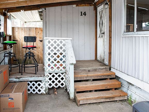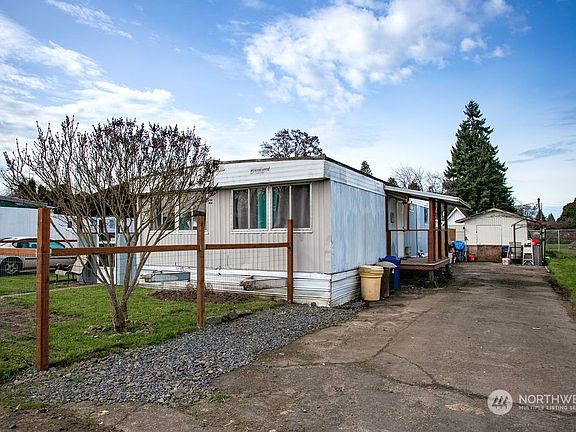This 2 bed 1 bath home is ready for your personal touch. The home has a covered front porch - a fully fenced front and back yard - a long driveway with space for up to 3 vehicles - a shed for all your storage needs - and a nice sized fully fenced back yard with a patio and room for a garden, a play area or entertaining. Best of all, space rent is only $455./mo.! Conveniently located to Interstate 5, entertainment, shopping, and recreation. SELLER CAN DO NO REPAIRS - Home to be sold AS IS.