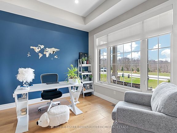 Welcome to one of Exeter's most sought-after addresses on Hazelton Lane where luxury meets functionality in this meticulously crafted home. Boasting over 2,800 sq ft of beautifully finished living space, this property is ideal for families, multigenerational living, or anyone seeking a spacious, high-end lifestyle.The standout feature of this home is the oversized 3-car garage, complete with a rear bay door for backyard access and direct stairs leading into the finished basement offering the potential for a separate in-law suite or private space for extended family.Inside, you are greeted by a bright main-floor office and a spacious primary suite with a walk-in closet and private ensuite, creating the perfect retreat. The open-concept kitchen, living, and dining areas flow effortlessly, making entertaining a breeze. Convenient main floor laundry adds to the homes practical design.Upstairs, two generously sized bedrooms and a full 4-piece bathroom provide plenty of space for kids or guests. The fully finished basement includes an additional bedroom, a stylish rec room with an electric fireplace, and a modern 4-piece bath. Ideal for movie nights, game days, or extended stays.Step outside to enjoy the large, fully fenced backyard with ample room to relax or play. Located just steps from the scenic Morrison Dam walking trails, this home offers the best of small-town charm and outdoor adventure.Dont miss your chance to own this rare gem in one of Exeter's most prestigious neighbourhoods.