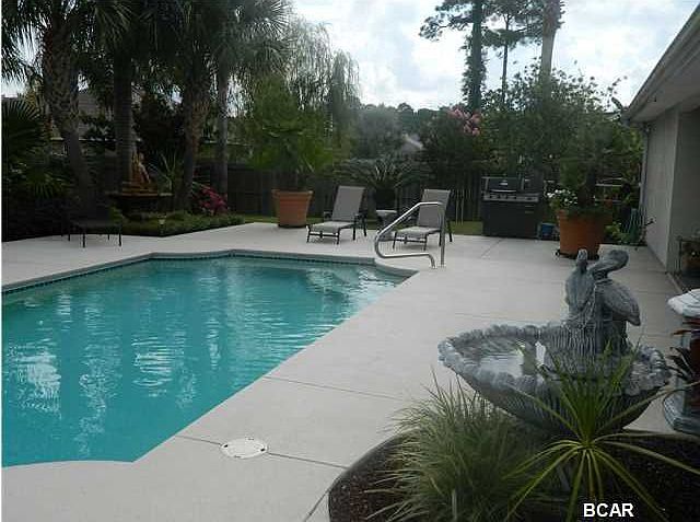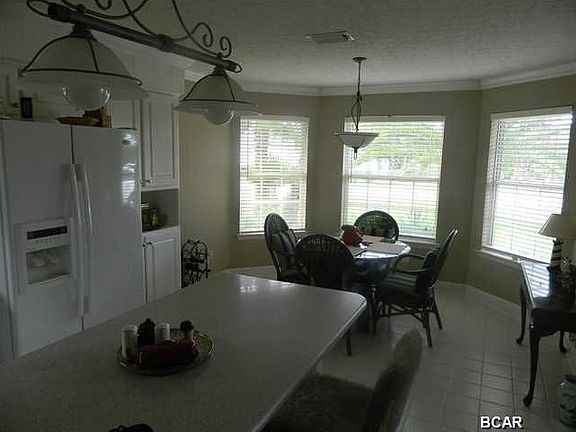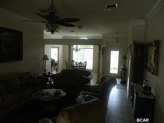 For those that love perfection, this home will not disappoint you. Priced below its true value and ready for a new owner. It feels bigger than it i because of the open floor plan. When you open the front door you can see the pool through the French doors leading out to the backyard. The split bedroom floor plan and the Kitchen which boasts GE Profile convection oven w/ 5 burners, bridge and warmer (new 2011). All lower cabinets have pull-out shelving. Booster hot water heater for kitchen sink. Refrigerator, microwave, dishwasher are Whirlpool Gold series. Solid surface countertops/island are Silestone. The Laundry room will include Maytag front load washer and dryer. Wire shelving above; room for hanging laundry, and storage for vacuum. The Master Bedroom/Bath there is an Insulated wall between bedroom and living area makes it very quiet. A huge custom walk in closet measures 6.4 ft x 11.6' Two person jetted corner tub with tile surround. Tiled oversized shower, with two shower heads, and corner seat. Frameless door with treatment that keeps it spotless. New 2011 Dual sink vanity, new faucets. Ceiling fans in both bed and bathroom. In the Living Room: French doors lead to large covered patio overlooking pool area. In the living room a Corner wood burning fireplace with 55" flat screen TV above that conveys. Ceiling fan with remote in living room There are also Ceiling fans in bedroom 2 and 3. Hall bathroom has granite countertop oversized; combo tub/shower. Outside features include Cobblestone driveway, with parking for 4 vehicles. Cobblestone sidewalks leading to front entry and side gate to backyard. Sprinkler system with well (separate from city water). Well pump new in 2010. Saline (saltwater) pool. Aqua-Rite cell and control new in 2012. Pool has bench on shallow end. Great for children and lounging. Backyard is completely fenced. Large pool deck area for lounges. Side yards in back are grass, and area surrounding pool is landscaped with tropical plants, palms, azaleas, two fountains that convey to make it feel like you are living in a resort in a tropical paradise. The accent lighting through out this property makes it a showpiece at night. Covered patio area has tiled floor with two ceiling fans. Built in 8' cabinet, with marble top and refrigerator. Flat screen TV mounted over counter. Storage shed for pool toys, and two large sheds for lawn equipment and stuff. Front yard has decorative yard light, locking mailbox. Garage has shelving and pegboard. Pull Down stairs lead to floored attic with shelves for extra storage. American Standard furnace/ac with electronic air cleaner. This home is energy efficient as well.Close to schools and Naval Coastal Systems Station and very central to all areas of Bay County. This is a must see. --------------------------------------------------------------------------------