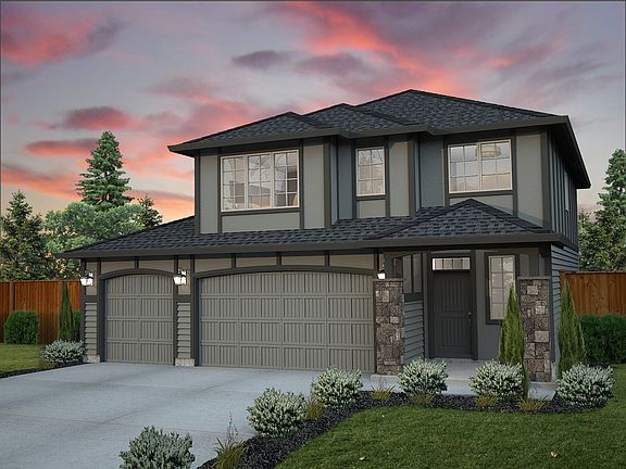 Live at ease in The Lewiston, with 3 bedrooms, 2.5 baths, den, recreation room, great room and 3-car garage. This home offers an open concept main level with a spacious great room leading into the kitchen with an oversized island and dinette. Enter through double doors from the kitchen to the den or optional guest suite. The second level has two bedrooms, recreation room, master suite and bathroom, upstairs bathroom includes double vanity as well as tub/shower combo. The master suite features a walk-in closet, bathroom with double vanity, shower and raised tile-in tub. An optional patio cover is available.