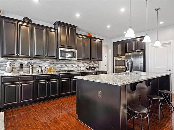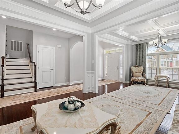 LARGE & LUXURIOUS OVER 4,000 SQ FT OPEN CONCEPT QUALITY UPDATES. STUNNING HARDWOOD FLOORS ON BOTH LEVELS! Gourmet kitchen, 9 ft granite island breakfast bar, double oven, walk-in pantry & space for casual dining. Flexible floor plan with great bump out sunroom, all open to the family room. Next the formal living room and dining room (currently used as 1 large formal gathering space). These rooms are very welcoming just off of the foyer & full of architectural detail like coffered ceilings, wainscoting, chair rail & custom window. The main floor also has a bedroom w/private bath perfect for in-laws or guests (or an office). The upstairs owner's suite provides 2 walk-in closets, private bath w/soaking tub, ceramic shower, & dual granite vanities. 3 additional bedrooms - 1 w/private bath, all with double closets. Convenient upstairs laundry room + hall bath w/double granite sink. Walk-out lower level is a 1500 sq ft open canvas plumbed for full bath! Why build? LIKE NEW ONLY 2 YEARS OLD!