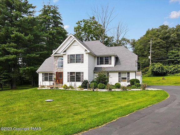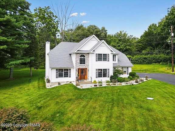 JUST REDUCED 100,000 !!! Less than 5 Miles from NJ Colonial Home at End of Quiet Cul-de-Sac , Yet Close to Conveniences of Shopping, Restaurants,Pocono Medical Center, East Stroudsburg University. Beautiful 4 bedroom and 2.5 bathrooms Home with lovely hardwood and tile files Sunken Family Room w/ Stone fireplace,two Story Foyer with hard wood Staircase. Formal Dining Room and Living room. Kitchen has plenty cabinet and counter space. Laundry on first floor. The whole house has Hardwood Floors and tiles