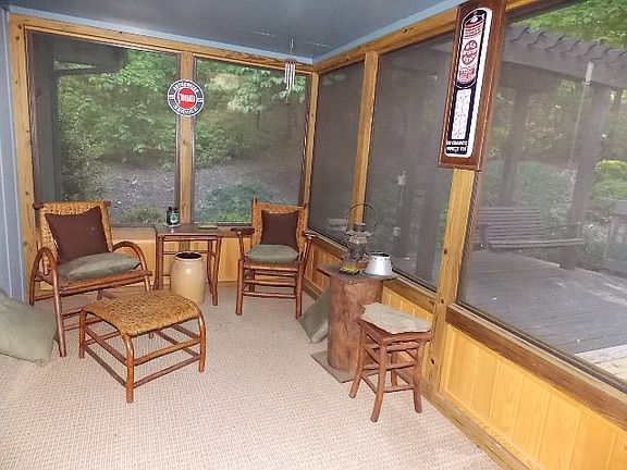 Private haven on a double lot in desirable Hankins neighborhood, just minutes from Lake James. This well-built beauty boasts a newer kitchen with custom oak cabinets, granite countertops and Island. Kitchen is open to den with eat-in table space, a large rock hearth for your woodstove or free-standing fireplace. Large LR/dining combo, 3 bedrooms. 2007 Roof, heat pump, gutters and cypress fascia. Fantastic, private outdoor living w/screened porch leading to large deck w/pergola swing and covered grilling/dining area. Lovely grounds and a 24x34 boat garage that could become a great workshop or whatever you need! Full basement has one-car garage, large laundry and full bath awaiting your vision. In basement also is a wood stove that can heat just basement or the whole house/engineered into vents. Great one-level living at this lovely home.
