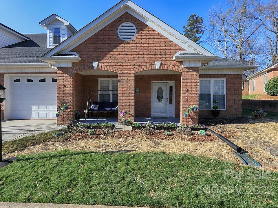 Location, location, location! Mooresville Graded Schools; GATED community, downtown Mooresville. Food Lion grocery around the corner. Looking for a 1-story with NO steps? Great condition, easy living. Enjoy cooking in this spacious kitchen, complete with brand new LG appliances and double ovens; new backsplash, lighting, hardware, faucet, and disposal! Trey ceiling, walk-in closet in Primary bedroom + jetted tub in ensuite bath. French doors open into office/3rd bedroom, with new tile floor and lighting. Fresh neutral paint throughout - incl. ceilings/trim/closets. All brick; lawn care and roof included in HOA; 1-story; garage. Large breakfast room opens to patio. Hardwood floors in main areas. Roomy covered front porch. New upgraded tile floor in foyer; fireplace surround/hearth. New electric fireplace insert. Most of the bling has been replaced with more neutral scheme since photos were taken. Nothing to do except move in! Call for an appointment today!