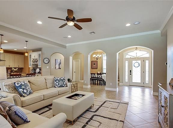 Superb open floor plan, 3 bdrms PLUS office/nursery/crafts room with closet. Elegant cut beveled glass front door, sidelights and transom. Brazilian cherry wood & tile floors, no carpet. Stunning gourmet kitchen, S/S appliances, 2 islands, granite ctops, tile bksplsh, designer touches. Master bed/bath suite w/ tray ceilings, sep frameless glass shower, spa tub and separate vanity. Beautiful landscaped backyard, in-ground pool & decking. Drive through rear garage door has rear yard access.