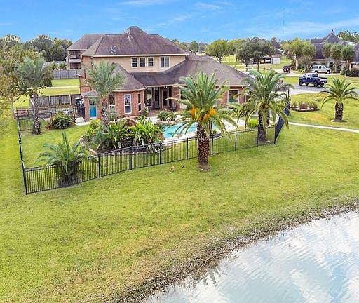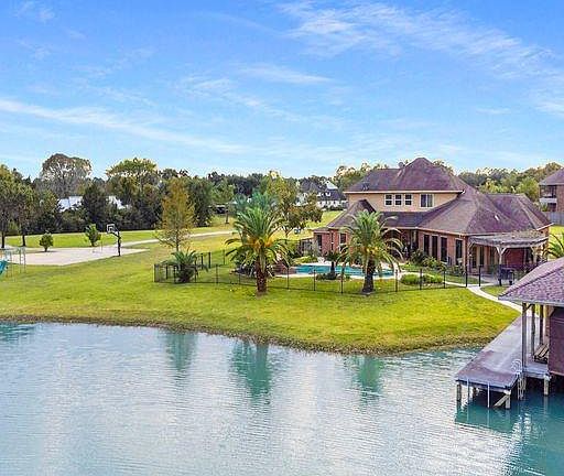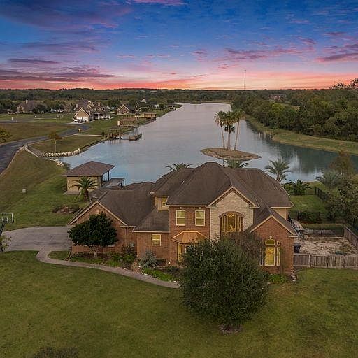 Experience true resort life in this small gated-community with 4 private ski lakes, your own private boat lift & a beautiful pool. Nestled on an acre lot, this luxury waterfront home displays true elegance & craftmanship. As you step inside, you will be drawn to the picturesque view of the well-groomed backyard, overlooking a ski lake that is visible through a wall of windows. Throughout the home you will find custom touches, including soaring ceilings, painted concrete flooring, crown molding, built-in shelving units & strategically placed floor plugs. The well designed open floor plan offers an office, formal dining room, dry bar, 2 living areas, beautiful kitchen, eating nook & sunroom. The primary bedroom, located downstairs, has an en-suite bathroom with 2 vanities, soaking tub, large frameless shower & walk-in closet. Upstairs is an additional suite, game room, bathroom & 2 more bedrooms. Find the true ambiance of the home as you enjoy the virtual tour & review the feature sheet.