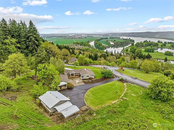 Spectacular 180 degree Columbia River view from this one level home. You will love the large windows in the living that overlooks the flat back yard and Columbia River. Lots of great outdoor space with 2 decks and back covered patio. 3 bedrooms plus den, living room, family room and formal dining room. Gas fireplace in the living room and woodstove in the family room. Forced air heat with heat pump. 3 car garage plus shop and 2 metal carports. Located on 3 separate tax parcels. 2 parcels are 2 -/+ acres each. Both with river views. Short drive to freeway. 30 minutes to pdx.