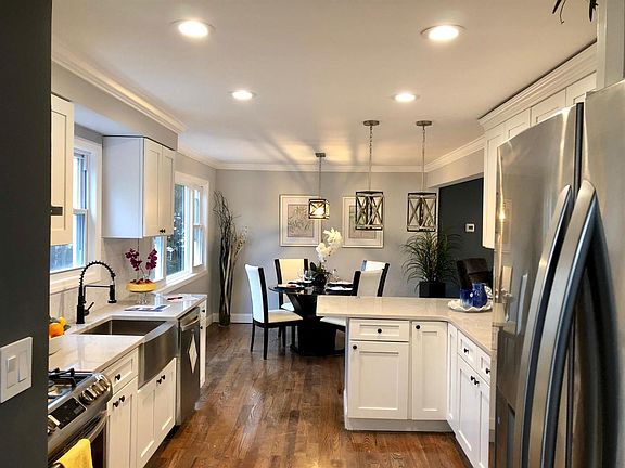 Renovated bright Colonial with 4 BR 1.5 bath. Modern open kitchen with quartz counter top throughout, top of the line stainless steel appliances and wine refrigerator. It features a breakfast bar offering stool seating or serving surface that opens to dining room. Gleaming hardwood floors, brand new heating and cooling system and new electric box. Spacious room on the first floor that can be used as family room, bedroom or home office. Large open basement for extra space. Crown molding and wide baseboard molding throughout. GREAT LOCATION! on quiet street and the MANOR SECTION of Englewood, minutes to downtown, close to NYC transportation, schools, shopping and more! Wont last.