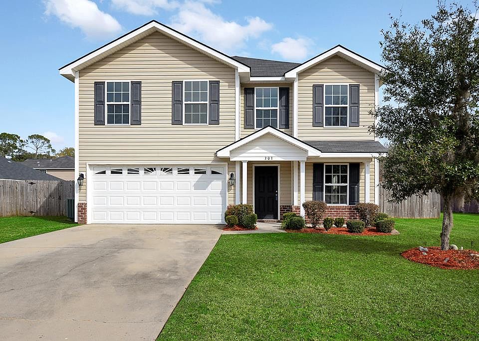 Stunning home in the highly desirable Griffin Park Subdivision! This beautiful 2 story home offers plenty of room for everyone with 4 bedrooms & 2 1/2 baths, living space and plenty of room for dining. Upstairs, the huge owner's suite features a walk in closet and private ensuite with double vanity, soaker tub & separate shower. Nice sized secondary bedrooms, dedicated laundry with washer/dryer hook-up, two car garage plus large backyard with privacy fence and open patio that are perfect for grilling and entertaining! Short walk to the exclusive neighborhood amenities and conveniently located to Fort Stewart and surrounding shopping/eating areas.