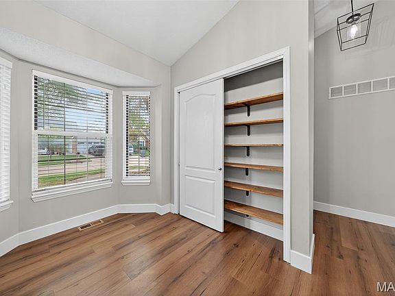 Step inside this beautifully updated 2 bedroom, 3 bath ranch home featuring luxury vinyl plank flooring throughout and soaring vaulted ceilings that create an open, airy feel. Fresh neutral paint, updated lighting, and new stone countertops pair perfectly with the stainless-steel appliances and sliding door pantry, making the kitchen as stylish as it is functional. The separate dining area opens through sliding glass doors to a patio overlooking the large, flat, fenced backyard — perfect for entertaining while the kids and/or pets are at play. The spacious living room showcases a cozy wood-burning fireplace, ideal for relaxing on cool fall evenings. The primary suite offers a private retreat with an updated ensuite bath and walk-in closet. Venture to the lower level to find two generous recreation rooms — perfect for a kids play area, home theater, or game day gatherings, a full bath, and a versatile bonus room (ideal for an office or potential third bedroom with the addition of an egress window). The Ring doorbell, refrigerator, and washer and dryer can all stay. Major updates provide peace of mind, including a brand-new roof and skylight, new appliances (2023), updated flooring, and a new primary bathroom vanity. Conveniently located just half a mile from Fort Zumwalt East High School and close to highways, shopping, and dining — this home offers modern comfort, style, and an unbeatable location.