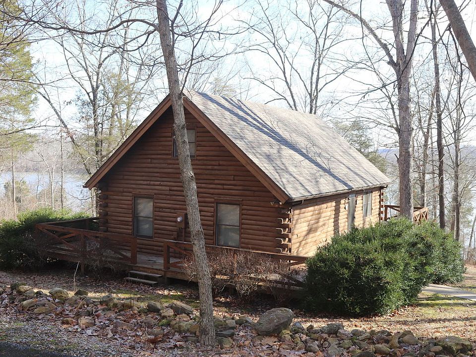 Waterfront on Nolin Lake! Charming log cabin in gated, sought after Lochober subdivision. This rustic, inviting home has stunning views of the lake. The deck wraps completely around the home to take full advantage of the views. Enjoy cool summer breezes, brisk autumn evenings and starlit nights enjoying mother nature on the deck. The vaulted great room has a wall of windows to take in the views. You'll love the open floor plan. The great room, kitchen and dining area are all one large room. In addition, there are two bedrooms, a full bath and laundry on the main level. Upstairs, the loft is generous sized and would make a great ''dormitory'' area or master retreat. There are wood floors thru out the home. Need storage? The large crawl space has room for all the lake toys. The