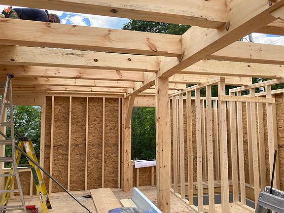 Designed by James Herrick, Architect, this "Executive Brunswick post and beam" is the perfect place to work from home. Newly constructed post and beam style cottage in the heart of Brunswick. Bike/walk to town or the extensive Brunswick trail system. Close to all amenities including Bowdoin College, Harpswell and I295. High speed internet/cable is available from Comcast/Xfinity. Main floor consists of front farmers porch, kitchen/dining area and living area. A half bath is on the main floor as well as access to the full unfinished basement. All new kitchen appliances including dishwasher, stove/oven, fridge with ice and water in the door. Open floorplan with flowing light and space. Second floor bedroom with closet and ceiling fan. There is an additional executive office/second bedroom which can be set up as needed. Full bath on the second floor with tub/shower combination. Adjacent laundry room with new stackable washer and dryer. Exposed beams, all new appliances, floors etc. Efficient natural gas heat and town water/sewer. Easy to clean flooring. Lots of natural light and open feeling as a result of the post and beam construction. Entry driveway is shared with neighbor but there is off street parking and your own garage. Owner maintains landscaping and snow removal from shared driveway. Still under construction tentative availability 3/1/21. Will upload and update fotos as progress permits. Accepting Inquiries now. Owner maintains/pays for grounds keeping and snow removal of shared/common driveway. Renter is responsible for utilities i.e. electric, natural gas, water/sewer and snow removal from cottage and garage entryway. One year lease required, non smoking and no pets allowed (non negotiable). References, background, credit check and security deposit are required.