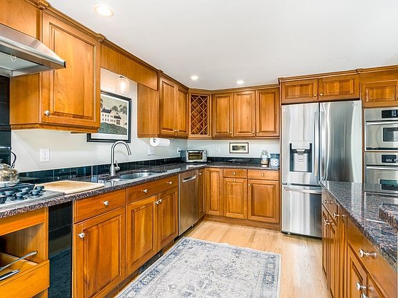 This wonderfully well-maintained ranch with amazing updates is the one you've been waiting for! Set on a gorgeous acre lot, you will love the privacy it affords. The unique and charming design of this property lends itself to comfortable living with your entertaining area in the light filled walkout lower level. The primary and guest bedrooms are on a separate level which allows for a peaceful retreat. The primary ensuite bedroom has a gas fireplace and a new double sink vanity with quartz top. The large picture window offers tranquil views of the lush backyard and sunsets at the end of the day. Are you in need of a studio, home gym, separate home office or overflow hang out space, this property has it covered in the newly finished detached garage! Other improvements include: new asphalt driveway, new brick walkway, professional landscaping and plantings, new 12x16 Reeds Ferry shed, new cedar outdoor shower with changing area, new Azek deck with bench seats, new paver patio, new hardwo