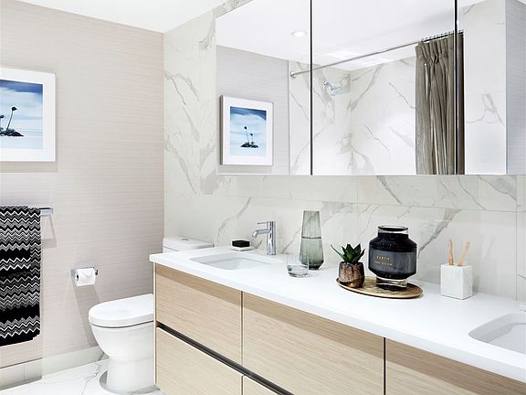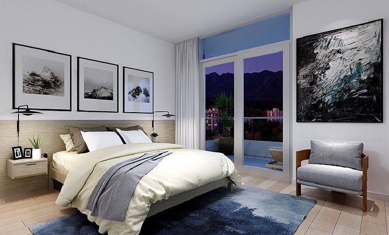 This beautiful 2 bedroom, 2 bath home features beautiful North East facing views of Grouse Mountain, North Vancouver, Burnaby and Mt Baker. The beautiful deck will be equipped with gas hook up, which makes the balcony useful throughout the whole year by barbecuing during the summer or having a fire pit in the winter. Beautiful finishes including Grohe kitchen and bath hardware, laminate flooring, 2 tone cabinetry and European produced AEG appliances. Heating and cooling system for year-round climate control is standard along with the 9ft ceilings. You still can select your preferred colour scheme as construction is just starting.