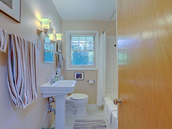 Live like a local in this newly remodeled and updated private mid-century one-level home located in a quiet and convenient neighborhood. The home features comfortable, open, and relaxed spaces decorated with a warm artistic style and colorful art. Enjoy the fenced backyard, perfect for BBQs and lounging on the beautiful post-and-beam covered patio, offering a great alternative to the quiet, shady park across the street when you desire more privacy. The master bedroom boasts a new mattress on the queen bed, while the second bedroom features an antique double bed, ensuring sweet dreams for up to four people. The spacious mud laundry room is ideal for equipment storage and houses a collection of cookbooks. The bright kitchen is fully stocked with gourmet cooking and serving supplies and new appliances, perfect for cooking up a storm, as this is a private home during the fall, winter, and spring. The home is equipped with a bright, fully stocked kitchen featuring gourmet cooking and serving supplies and new appliances, making it perfect for culinary enthusiasts. The living spaces are adorned with colorful art and warm artistic style, providing a cozy and inviting atmosphere. Additionally, the house offers a library with a vast collection of books, CDs, DVDs, and over 300 movies to enjoy on your computer or the small TV. Pets are welcome at pet-friendly homes with prior approval and a $15 per night pet fee. Pets are not permitted on the bedding or furniture and must never be left alone unless crated or kenneled. Nestled in the Columbia River Gorge, this location offers vacationers and recreation enthusiasts opportunities for windsurfing, mountain biking, kayaking, golfing, skiing, hiking, fishing, or simply relaxing in a natural paradise. Historic buildings line the scenic streets of downtown Hood River, featuring a bustling shopping district with boutiques, designer shops, outdoor adventure gear outfitters, antique shops, art galleries, and over 30 restaurants. The Hood River Valley is renowned for its luscious apples, pears, cherries, peaches, and other fruits, as well as the majestic snowcapped peak of Mt. Hood. The award-winning Hood River Vineyards offers traditional wines and fruit liqueurs with a tasting room overlooking the valley. A separate rental agreement will need to be electronically signed before your stay.