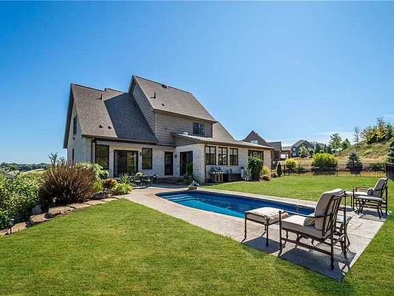 Impressive details are seen throughout this stunning Benjamin Marcus home offering main floor living at its finest. The spacious open floor plan is tastefully appointed and impeccably maintained. The living room boasts an impressive stone fireplace w/walls of windows allowing plenty of natural light fill the space. The kitchen is gorgeous with white maple cabinets, granite counters and high end appliances. The Morning Room is super convenient with a beverage center complete with a wine refrigerator, coffee station area, sink and easy access to the patio and pool. The main floor Master Bedroom is stunning offering a view of the pool. The well appointed master bathroom has granite counters and a tiled rain head shower. The main floor laundry room offers access to the rear patio as well. The second floor offers 3 additional bedrooms, one currently used as lounge area. Located just minutes to Peterswood Park, Montour Trail, Rte 19 and Rte 43. Don't Miss This One!