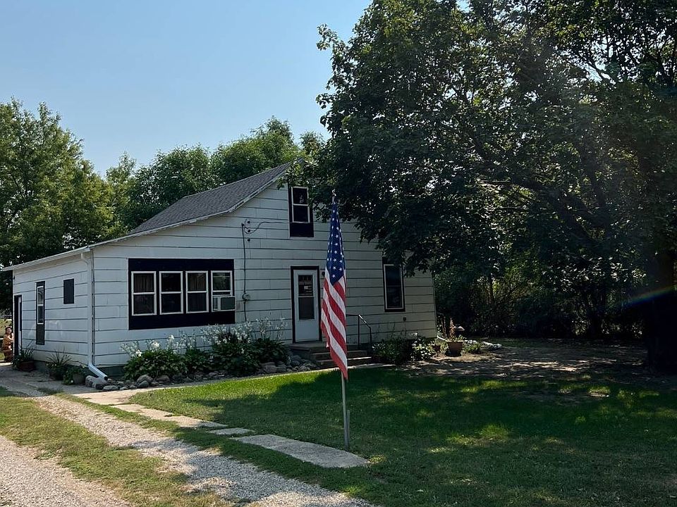 A cute 3-bedroom, 1-bathroom home located on three lots on the edge of town! New roof and gutters on house and garage in 2021. Main floor has kitchen, living room, one bedroom and main floor laundry. Upstairs is two bedrooms with original hardwood floors! Basement has plenty of room for storage. There is a one car detached garage and the yard is well landscaped with flower and plants. Lot is 155.5'X140'. Taxes are approximately $285/year. House has natural gas forced air heat and window air conditioning. Water heater recently replaced. Garage is 12'X22' or 264 sq. ft. Information contained herein was obtained from sources deemed reliable, but we cannot guarantee its accuracy. Prospective buyers are urged to inspect the property and rely on their own conclusions.