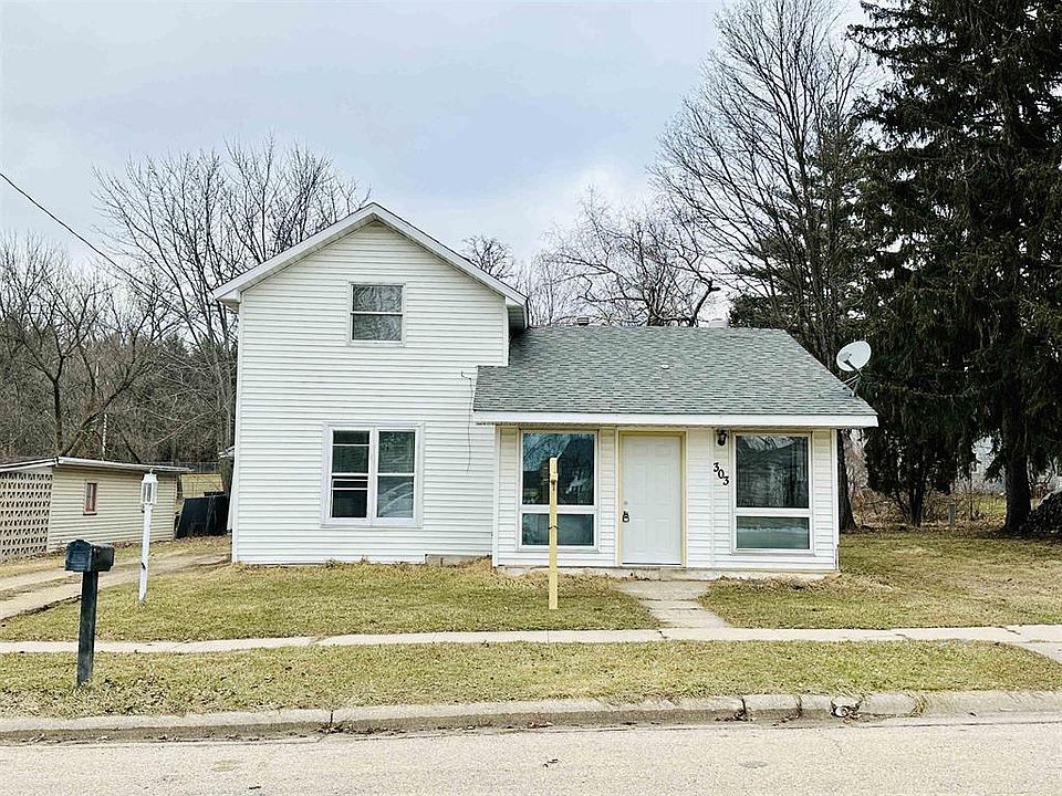 Showings begin 9/6/2025 4 bedroom 1 bath updated home close to the Baseball diamonds, village park, and Sugar River! Walking distance to downtown for the festivities! 2 bedrooms on main floor and 2 upstairs. Cute brick accent wall in the living room. Newer flooring, paint, exterior and interior doors, electrical box and more! 2 car detached garage. Large yard to enjoy!