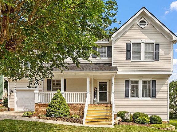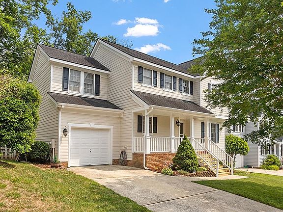 Updated transitional home in Cary's highly desirable Park Village. LVP floors throughout 1st floor. Spacious family room features cathedral ceiling & newer gas log fireplace. Formal dining room includes shiplap accent wall. Bright & open eat-in kitchen offers granite tops, stainless steel appliances & brick backsplash. Large primary suite has vaulted ceiling, walk in closet, dual vanities & new tile shower with bench, rain shower & spray wand. 3rd bedroom includes distressed wood accent wall. Fresh exterior paint 2018. Oversized 1 car garage. Expansive deck. Fantastic, fenced backyard. Davis Dr schools! Walk in crawl space. Located on quiet cul-de-sac road. Pool community.