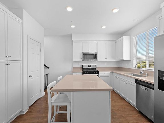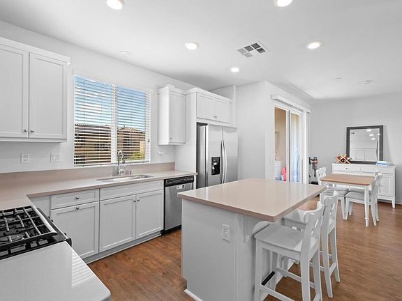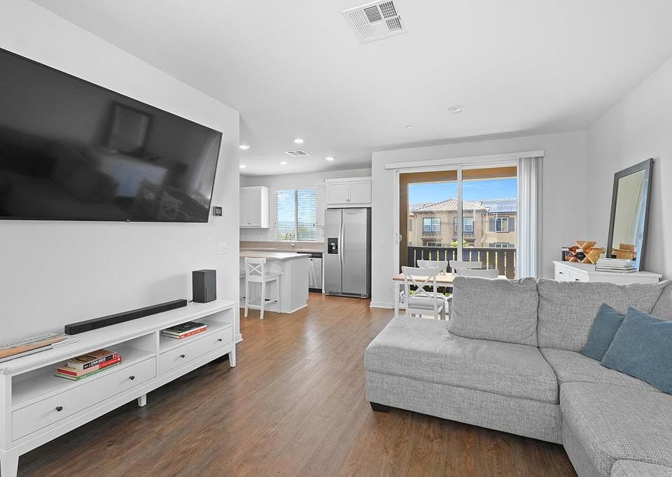 Welcome to the Mission Villas Community of San Marcos. Built in 2017, this "like new" unit is laid out like a townhouse (no one above or below) with a 2 car attached garage. The unit is located in the end building which allows for ample natural light to beam through windows on both sides. The main floor features luxury vinyl plank flooring, a 1/2 bath for guests, a dining area, and private balcony for additional living space. The modern kitchen has shaker cabinets, stone countertops and stainless steel appliances. Upstairs you'll find a full size laundry closet and two generous sized bedrooms each with their own ensuite bathroom. With easy freeway access, close to local shopping and eateries and less than 2 miles from CSUSM, the location is ideal.