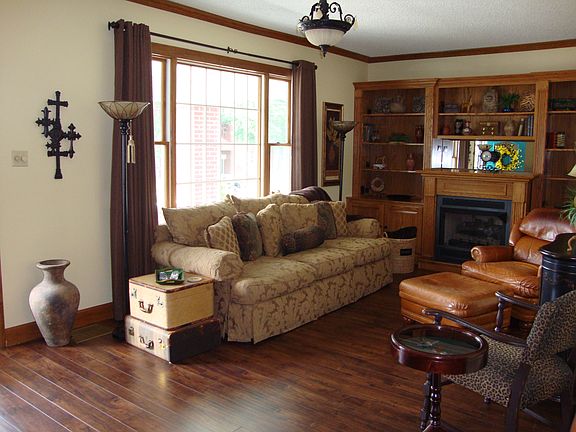 Immaculate Turn Key home in Boonville! This gorgeous home offers 2 bedrooms and 2 baths with many updates in the main home, and another full mother-in-law suite with a full kitchen and bath behind the home attached to the garage. The living room has beautiful built-in oak shelving with outlets surrounding a gas fireplace and a large window for plenty of sunlight. The new, extra durable hardwood flooring leads into the dining room and kitchen that over look each other for an open feel. You won't lack cabinet space in this well kept kitchen with matching appliances and bar with stools for more seating room. Main level Master bedroom, walk-in closet, full bath with a chandelier that accents the home's character, and laundry. Upstairs is a large bedroom that is currently being divided off into an office as well, with plenty more space to spare! There is also a full bath and closet, along with built in shelving with outlets on a switch for decor and an abundance of floored storage upstairs. Basement offers more storage and has been waterproofed with lifetime warranty for peace of mind. In the basement there is a built-in safe for storing personal items, water hook-ups if you wanted to move the laundry room downstairs, and water heater that was replaced in 2012. Out back is a covered porch and uncovered patio, perfect for entertaining friends and family. The detached garage or man cave has a full eat-in kitchen, living room/bedroom with new carpet, full updated bath, washer/dryer that are included in sale, and 4 car tandem garage with plenty of storage and pull down attic that holds the separate water heater. This could even be used as a rental for additional income, and has a gas grill hookup out back. The walls in the garage bays are wash board and drains have been installed to be waterproof and ready to wash your vehicles indoor. New roof on home and garage in Nov. 2014 per seller. Yard comes equipped with sprinkler system with separate meter and is well taken care of by current owners. This home is clean, move in ready, and a must see to believe all the opportunity it has!