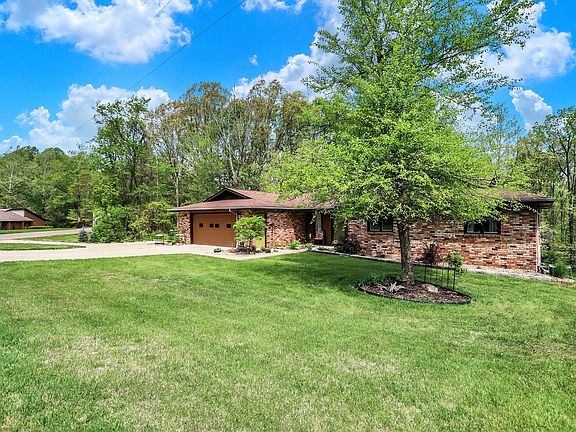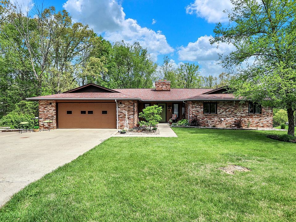Welcome to this beautiful, spacious, modern, light-filled nearly fully renovated 4 bedroom, 3 bath Ranch home with walk out basement. Make sure to see the 3D walkthrough click Additional Info -Branded Virtual Tour. Enjoy a sprawling 1.45 acre, treed lot, with a trail and charming seasonal creek. This property offers the perfect blend of privacy and picturesque scenery! The newly created open floor plan awaits you with upgraded fixtures and finishes. Enjoy the luxury of oak and slate floors throughout the entire main level. The kitchen's updates include paint, flooring, appliances, new pantry and coffee bar. The dining and great room flow seamlessly from the kitchen, making it ideal for gatherings and family meals. The main level primary suite has updated bathroom and tiled shower. Second main level bedroom is attached to the second full bath that's also fully renovated. Large new laundry room, on main, has lots of storage plus a fold down ironing board. The home boasts a spacious walkout lower level with two additional bedrooms, full bath, and family room with wood burning fireplace. This space is perfect for an entertainment room, home gym, or additional family living space, complete with a bonus kitchenette. Storage / utility room is huge and includes a safe for your valuables. Outside oasis includes deck for nature watching, hot tub for relaxation, expansive back yard and large outbuilding. Currently used for storage it's a versatile space that can be transformed into a workshop, playhouse, or a personalized "he/she shed"- the possibilities are endless. Experience the tranquility of this lovely property offering the space you deserve and it's priced with your finishing touches in mind. Home warranty included. Located in the desirable Hickory Hills subdivision & Southside school district!