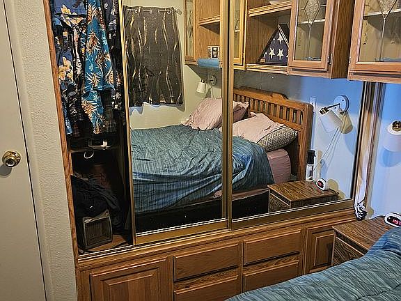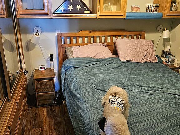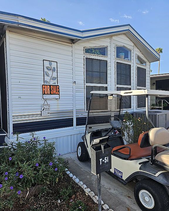 One bedroom, one and half bathrooms. Az room. Two hide a beds. New hvac, garbage disposal, washer and dryer and new mattress. 55+ community. Pools, hot tubs, tennis courts.