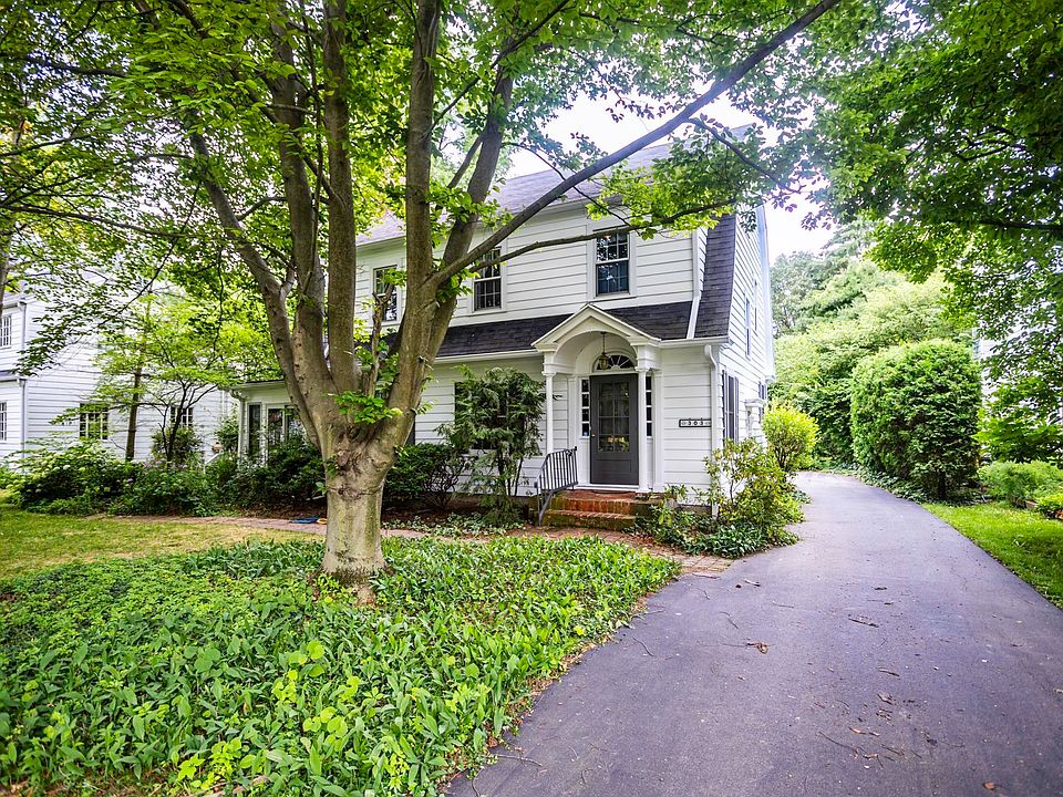 Beautiful 4 bedroom, 2.5 bath home in Kenmore, close to hospital and campus. Freshly painted exterior with shutters, mature trees, and Dutch gambrel roof. Large living room with fireplace and built in bookcase, access to sunroom. Gorgeous dining room with etched chandelier. Kitchen has powder room access, unique banquette, and generous cabinetry. Basement offers finished area, laundry, storage and workshop. Primary bedroom has en suite full bath with step in shower. 4th bedroom with walk in closet also has large adjoining recreation room. Backyard has plenty of privacy, and lovely garden path to fountain.