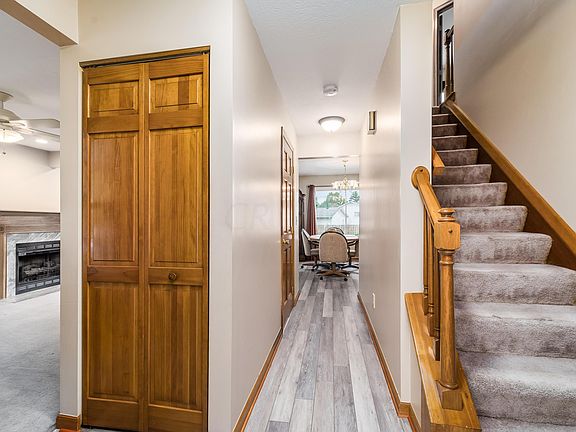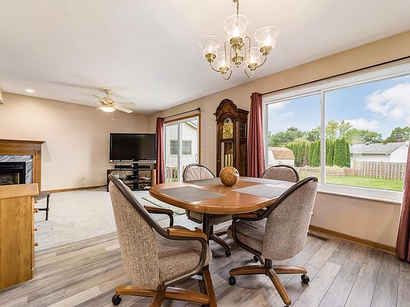 4 bedrooms, 2.5 bath, family room, dining room, kitchen with eat in area, full basement, full front porch, concrete patio in back of house. 2 car attached garage, shed in back yard.