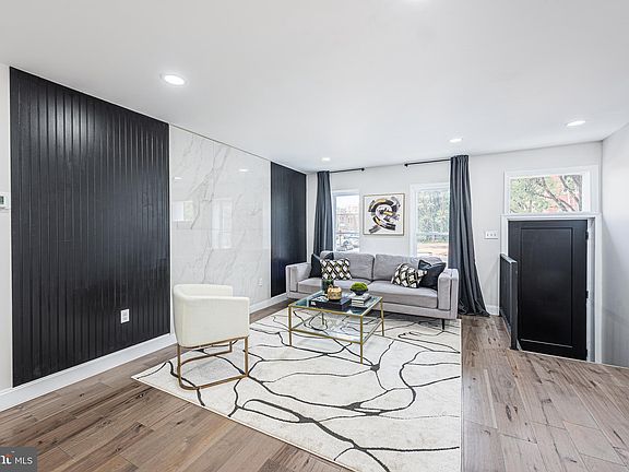 CUTTING EDGE DESIGNER RENOVATION WITH 4 LEVELS OF FINISHED LIVING SPACE!  This 16 ft. wide renovation features an open floor plan with wood flooring throughout the main level, a spacious living room with a dining area, a gourmet island kitchen with Quartz counters & ss appliances, the upper 2 levels offers a total of 4 generously sized bedrooms with 2 full baths, a finished basement with a family room, 5th bedroom and a 3rd full bath, and a rear fenced yard!  Eligible for 10k in closing cost assistance through the Southwest Partnership!