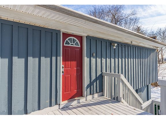 3 bedroom upper apartment with one bathroom. 1020 sq ft Eat in kitchen includes gas stove and refrigerator. Washer and dryer hook ups in unit Large deck. No one lives below you. Dog or cat allowed with pet deposit Trash included in rent Apartment is unfurnished Agent owned Section 8 ok Owner pays for trash Tenant is responsible for water ,electric and gas