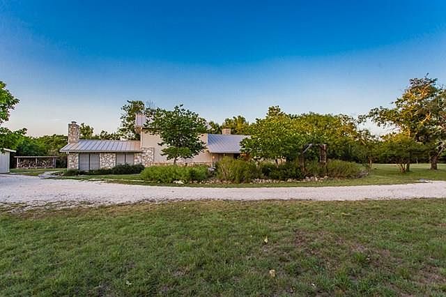 Relax & enjoy country living in this spacious home on 12+ acres. "Waltz across Texas" on this 1,000+/- sq. ft. of wooden deck shaded by large trees while grilling or smoking meat under your own covered BBQ area.. Listen to rain on a tin roof while sitting under one of the covered porches. A few steps away a charming foot bridge takes you to the herb garden. There is even a structure for firewood with a metal roof. Plenty of parking with the 2-car enclosed garage with workshop area, plus two 2-car carports. Plus there is a large well house/storage/workshop, former well house, livestock shed. All 9 structures have a new metal roof. Paved road all the way to private-gated entrance. No Deed Restrictions. Hunting allowed. Large irrigated, organic garden.